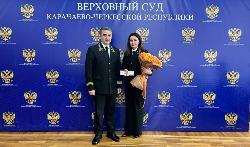 Сегодня Председатель суда Лепшоков Науруз Абрекович в торжественной обстановке представил вновь назначенных судей Калмыкову Алиту Алиевну и Лизунову Яну Юрьевну. Ранее мы об этом писали - https://vk.com/@versud_kchr-naznachenie-sudei В конференц-зале Верховного Суда Карачаево-Черкесской Республики в торжественной обстановке, в присутствии судей и работников аппарата суда Науруз Абрекович представил нового судью республиканского суда Калмыкову Алиту Алиевну и вручил ей служебное удостоверение. Науруз Абрекович поздравил Алиту Алиевну с вступлением в должность и пожелал профессиональных успехов в работе в ответственном и благородном деле по отправлению правосудия.